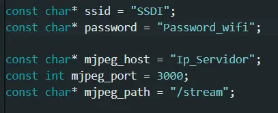a) Modificación del código. Se debe ingresar la dirección IP del servidor directo en el código antes de compilar además de los datos de conexión a la red wifi.